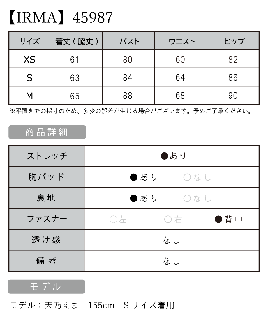 B:84 / W:64 / H:86 [着丈](脇下)約63cm |