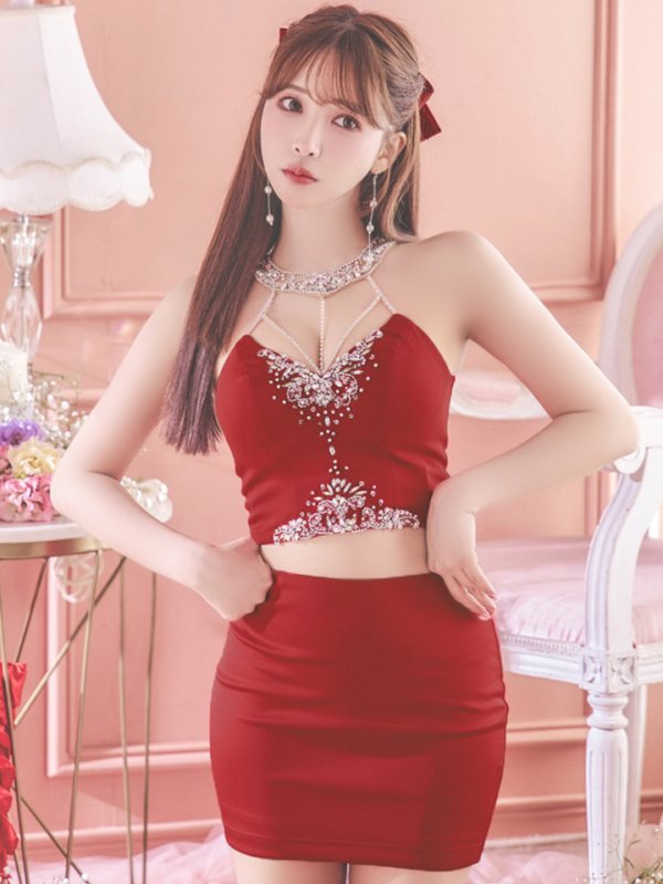 XSサイズあり【ANGEL R/エンジェルアール】 ホルターネック/ セパレート/ ワンカラー/ ビジュー/ ストレッチ/ ノースリーブ/ タイト/ ミニドレス/ キャバドレス[OF2] [AR24334-R-S240924]