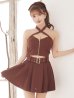 XSサイズあり【Glossy/グロッシー】リブ/ ホルターネック/ バストジップ/ セットアップ/ フレア/ ミニドレス/ キャバドレス[OF08] [GL3352-NV-S240927]