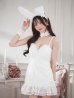 バニー ばにー うさぎ 定番コスプレ レース リボン 甘い あざと コンカフェ スイート あまい セットアップ ピンク ぴんく ホワイト 白 ブラック 黒
