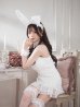 パールや編み上げでガーリーに仕上げた ちょっぴりレトロなフラワーレースワンピースのバニーコスプレ。