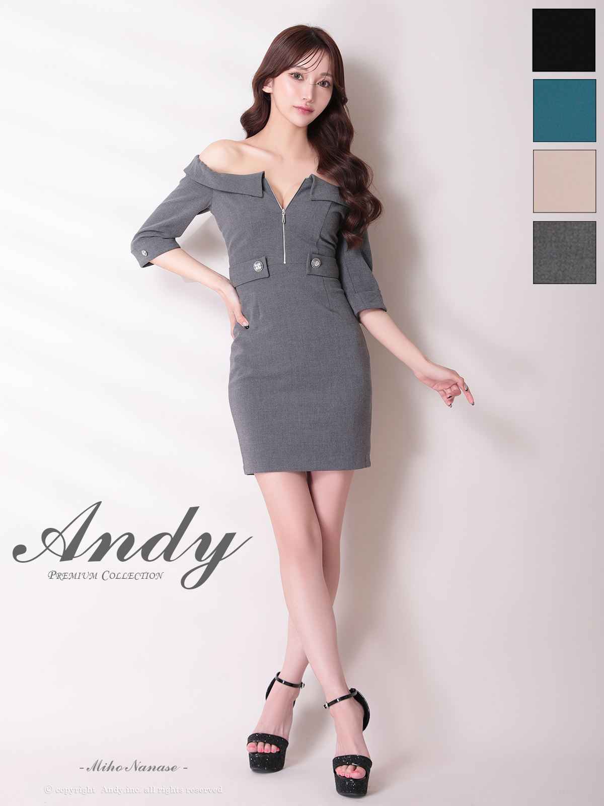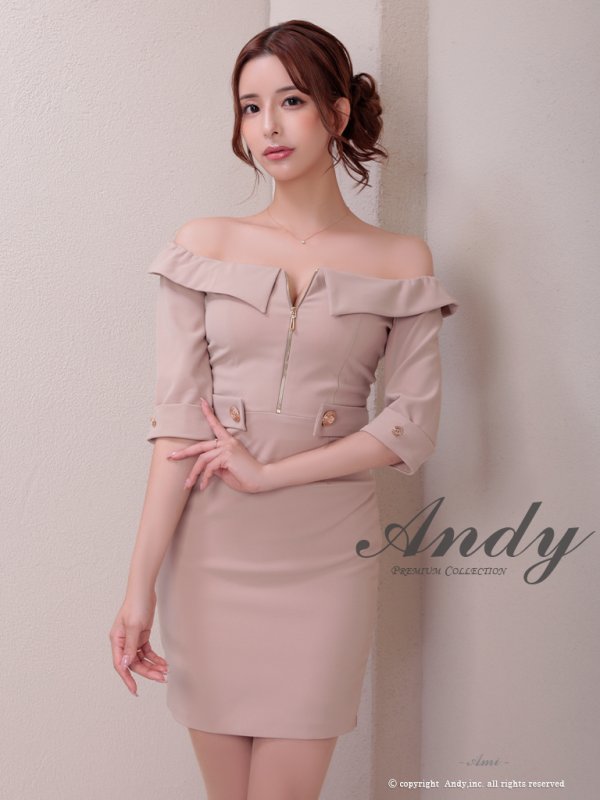 XSサイズあり【ANDY/アンディ】 フロントジップ/ バックリボン/ 袖あり/ 七分袖/ オフショル/ タイト/ ミニドレス/ キャバドレス[OF05] [ON2868-BE-2410]