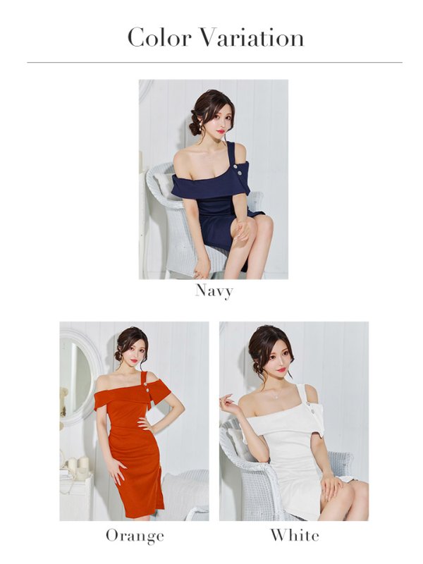 XSサイズあり【Veautt/ヴュート】【OF05】オフショルダー/ シンプル/ サイドタック/ ストレッチ/ タイト/ ミディアムドレス/ キャバドレス [VT082416-TRC-S241026]