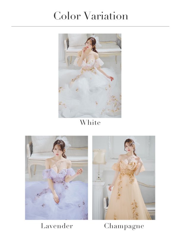 立体フラワー刺繍が華やかかつ、存在感抜群のプリンセスロングドレス