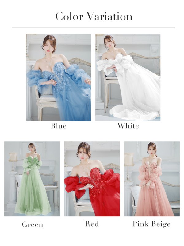 Lサイズあり【JEAN MACLEAN/ジャンマクレーン】2way/ パフスリーブ付き/ ベア/ ビーズ刺繍/ シアー/ チュール/ Aライン/ フレア/ プリンセス/ ロングドレス/ キャバドレス long【HC02】 [41691-JM-BL-S241030]