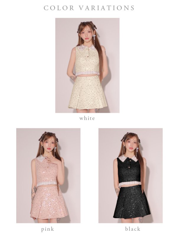 XSサイズあり【ROBE de FLEURS/ローブドフルール】襟つき/ スパンコール/ ツイード/ ノースリーブ/ セットアップ/ フレア/ ミニドレス/ キャバドレス[OF08] [fm3348-B-2410]