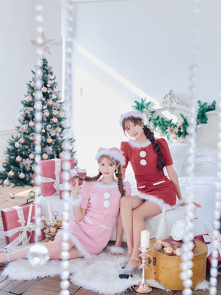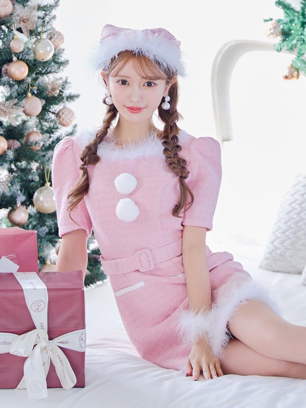 #半袖 #ツイード #タイト #袖あり #ワンピース #ミニ #ベルト #クリスマス #パーティ #サンタコス #サンタさん