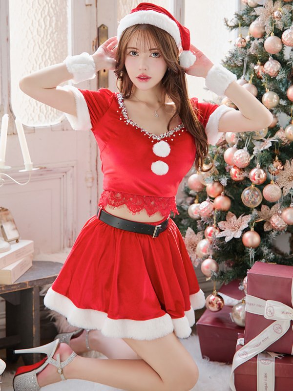 【サンタSALE!!】【サンタコス 6点セット】【XS-Mサイズ/1カラー】バックリボンセットアップミニ丈フレアサンタ[OF04] [SS083YN-24YM]