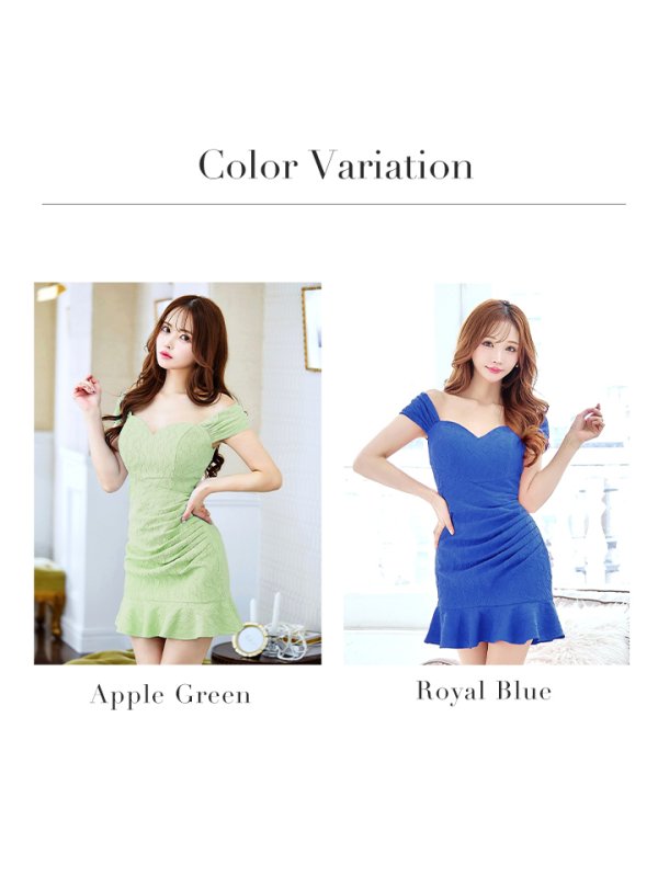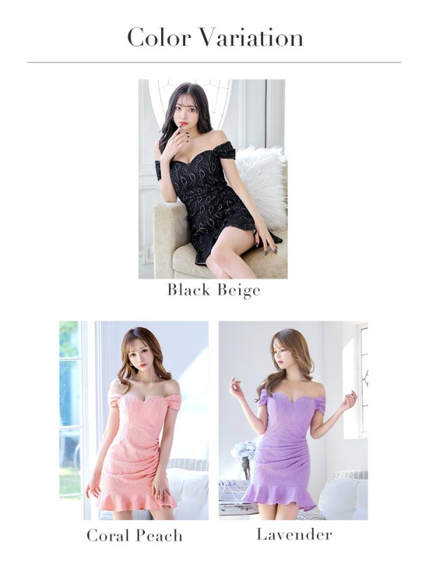 XSサイズあり【Donia Quinn / ドニアクイーン】 オフショルダー/ マーメイド/ ハート/ タック/ 裾フリル/ ミニドレス/ キャバドレス[OF05] [Q60127Y-BL-S2411]