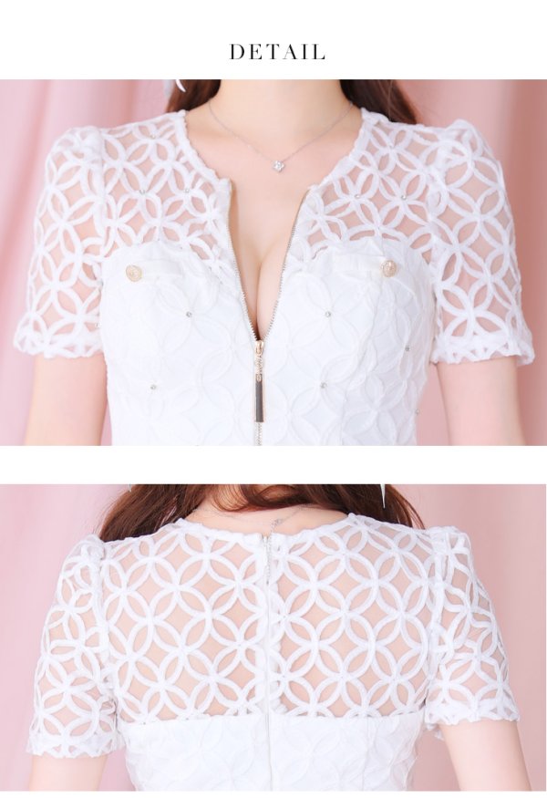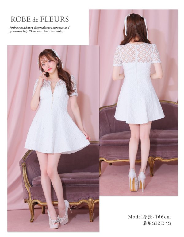 XSサイズあり【ROBE de FLEURS/ローブドフルール】シースルーレース/ ビジュー/ バストジップ/ 袖あり/ 半袖/ フレア/ ミニドレス/ キャバドレス[OF08] [fm3727-WR-S241111]