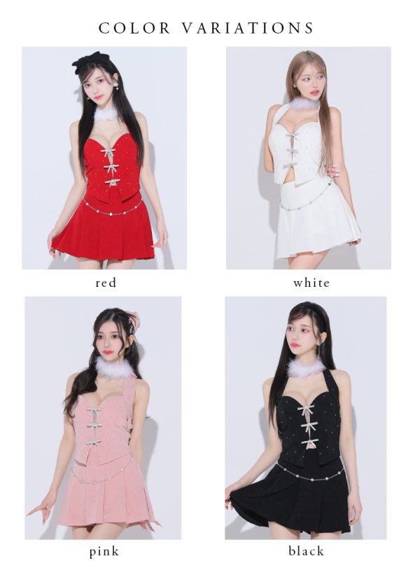 XSサイズあり【ANIER./アニエル】【ROBE de FLEURS/ローブドフルール】ファーチョーカー取り外し可能/ Ribbon suede flared setup mini Santa/ セットアップ/ ミニドレス/ キャバドレス[OF02] [anier4046-W-2411]