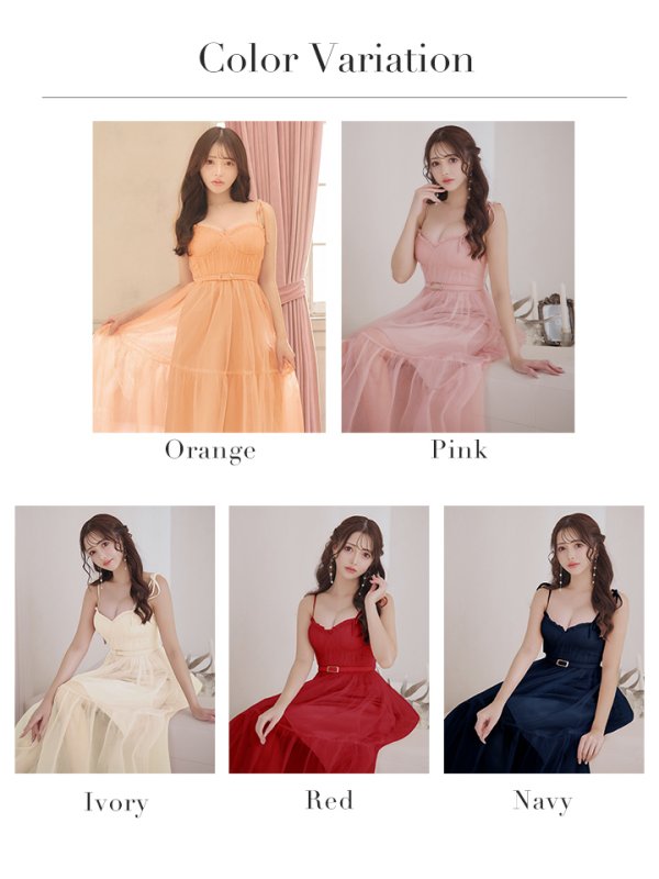 XS-Lサイズあり【DEA./ディア】ショルダーリボン/ フレア/ チュール/ ワンピース/ ロングドレス/ キャバドレス long[OF08]【一部予約商品/12月上旬発送予定】 [DE3745-NV-S241114]