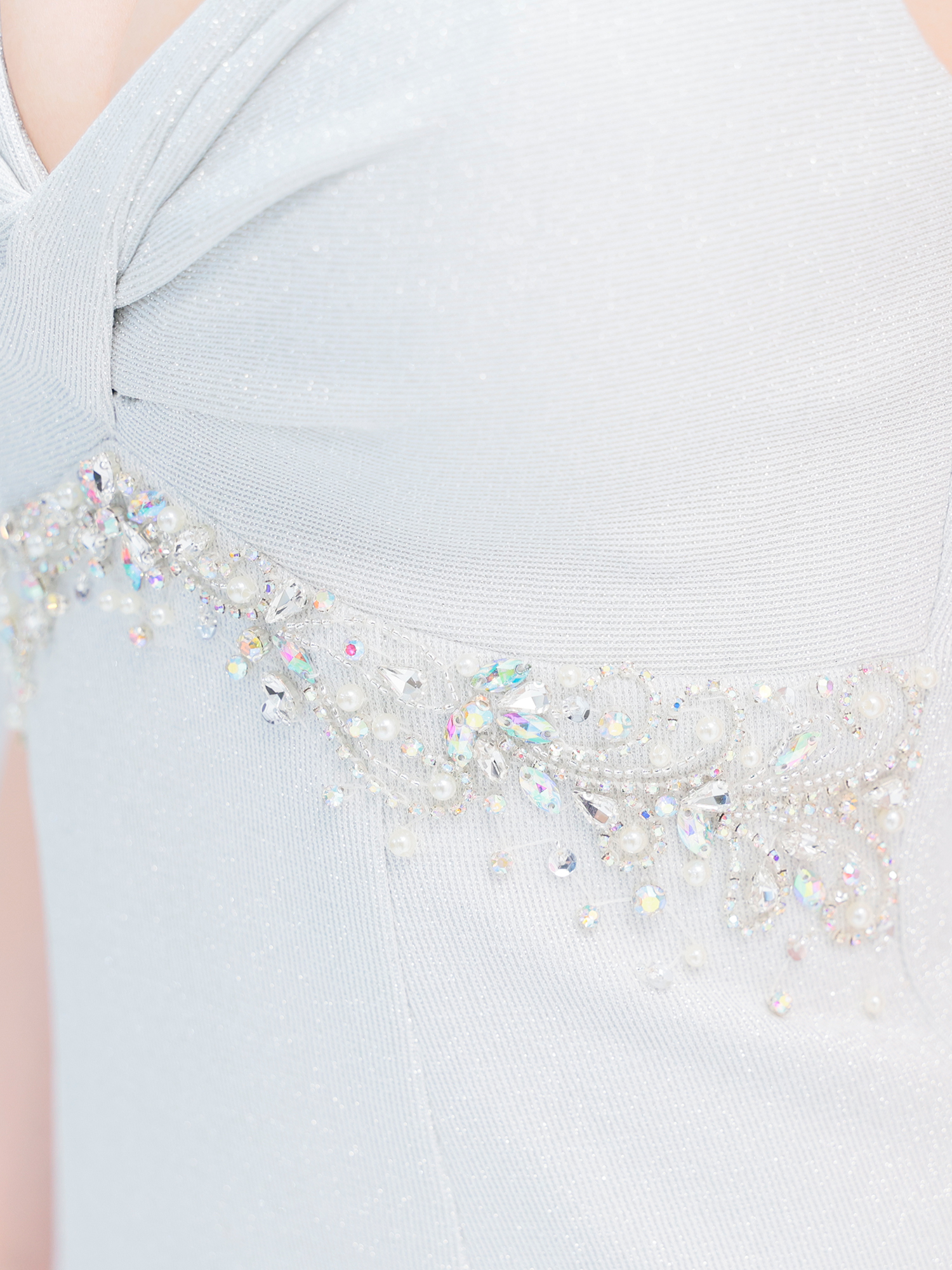 ラメ生地が全身から美しい輝きを放つエレガントな一着です。