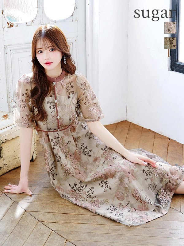 クラシカルなフラワーレースが上品な印象のミディアムワンピースドレス♡