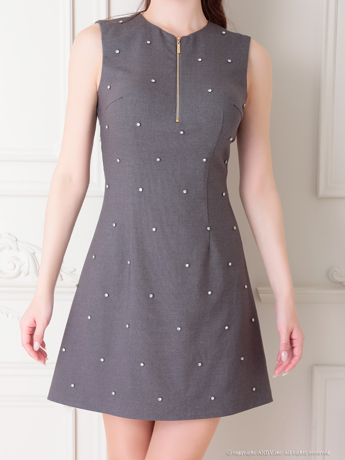 XSサイズあり【an /アン】ビジュー/ バックカットアウト/ ノースリーブ/ フレア/ ワンピース/ ミニドレス/ キャバドレス[OF05] [AOC3796-WR-S241119]