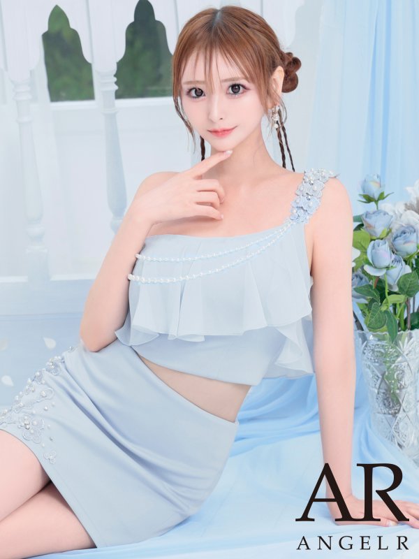 XSサイズあり【ANGEL R/エンジェルアール】パール付き/ ワンショルダー/ シフォン/ ストレッチ/ タイト/ セットアップ/ ミニドレス/ キャバドレス[OF2] [AR24853-SAX-2411]