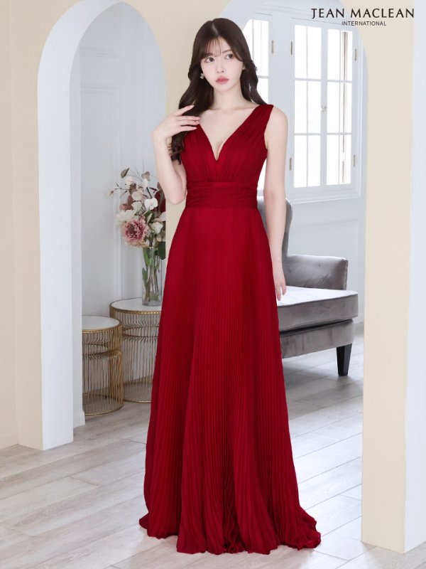 Lサイズあり【JEAN MACLEAN/ジャンマクレーン】シフォン/ Vネック/ ノースリーブ/ プリーツ/ Aライン/ ロングドレス/ キャバドレスlong【HC02】 [41687-JM-BGD-2411]