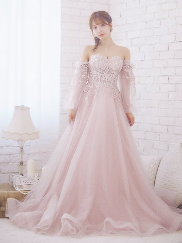【ANGEL R/エンジェルアール】ベア/袖あり/ オフショル/ フレアスリーブ/ フラワー刺繍/ ウェディング/ バースデー/ プリンセス/ フレア/ ロングドレス/ キャバドレスlong[HC03] [AR24101-P-S241130]