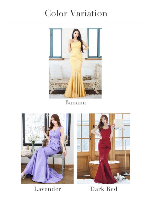 Lサイズあり【UNA VALERIE / ウナヴァレリェ】マーメイド/ プリーツリボン/ アシンメトリー/ ノースリーブ/ ロングドレス/ キャバドレス[OF05] [V60163L-LV-S2411]