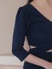 タイトスリーブで気になる二の腕をカバーし、アシンメトリーなタイトスカートが美しいシルエットを演出◎