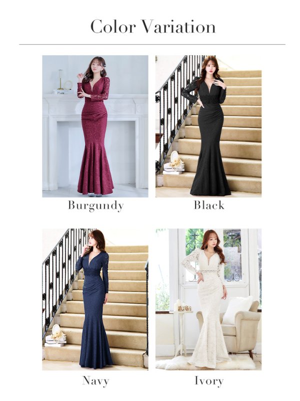 XLサイズあり【UNA VALERIE / ウナヴァレリェ】 総レース/ 長袖/ 袖あり/ シアー/ マーメイド/ ロングドレス long[OF05] [V60170L-LBE-S2412]