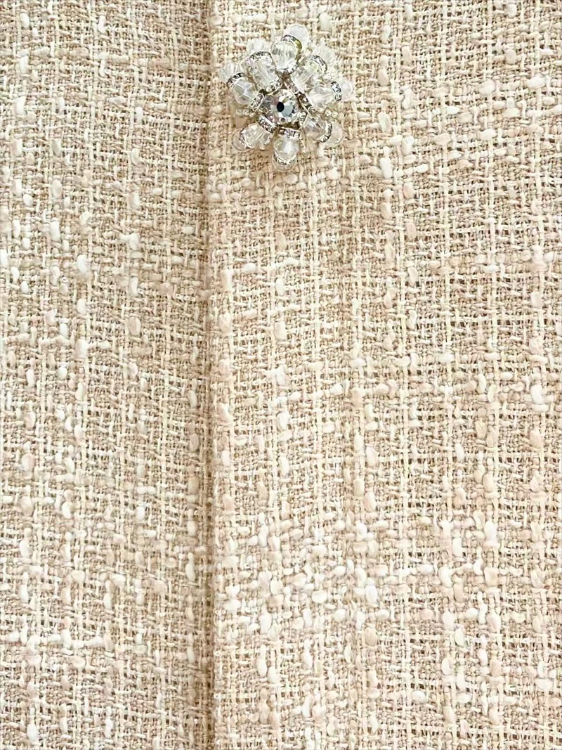 ツイード生地に煌めくビジューボタンが高級感溢れるミディアム丈ワンピースドレス♡