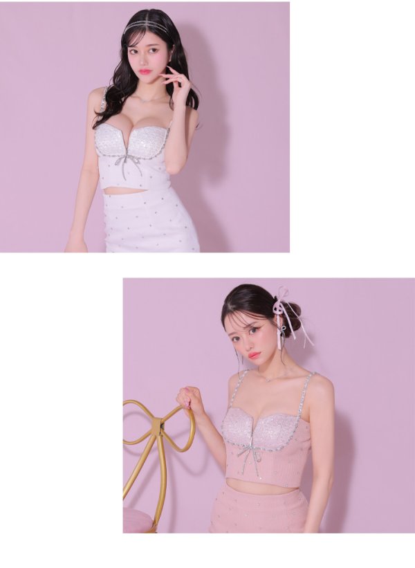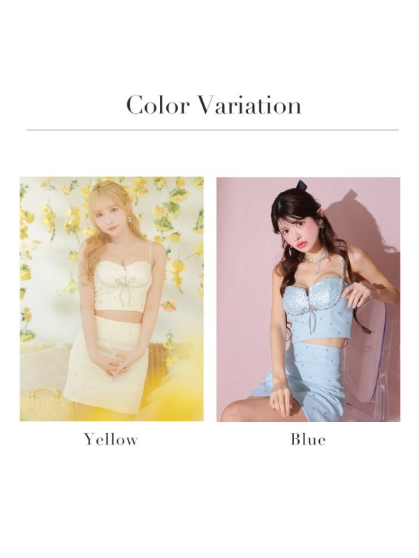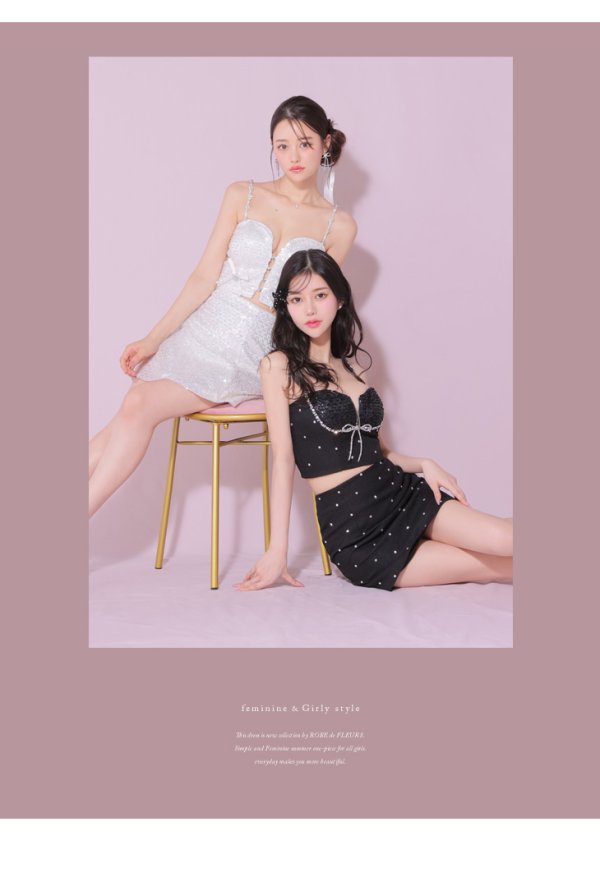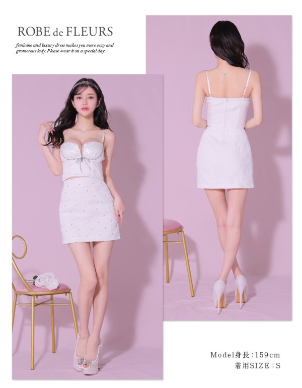 sugarコラボカラー・XSサイズあり【ROBE de FLEURS/ローブドフルール】ビジューリボンライン/ スパーク/ セットアップ/ タイト/ ミニドレス/ キャバドレス[OF08] [fm3738-Y-S250101]