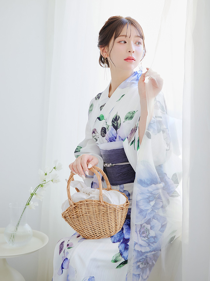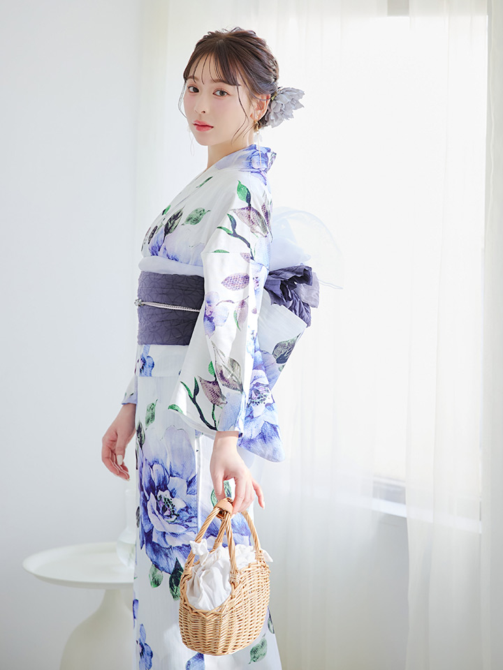 【即日発送!】【浴衣】白地に水彩牡丹のクラシック浴衣 【浴衣3点セット 浴衣/帯/下駄】 グラデーション帯[YMT] [Y-7002-nz-W-F-25IE]