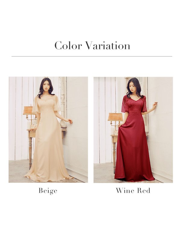 XS-Lサイズあり【SETTAN/セッタン】スパンコール/ ビーズ/ フレアスリーブ/ 半袖/ Vネック/ フレア/ Aライン/ ロングドレス / キャバドレス long[OF2] [LKS36120-BE-S2501]