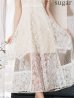 フレアスカートが女性らしいシルエットを演出し、レースから透ける素肌でセクシーさも◎