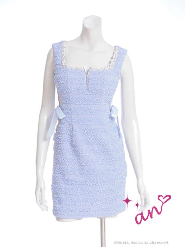 XSサイズあり【an /アン】サテンリボン/ スクエアネック/ サイドシアー/ フロントジップ/ ノースリーブ/ ストレッチ/ タイト/ ミニドレス/ キャバドレス[OF05] [AOC3810-BL-2501]