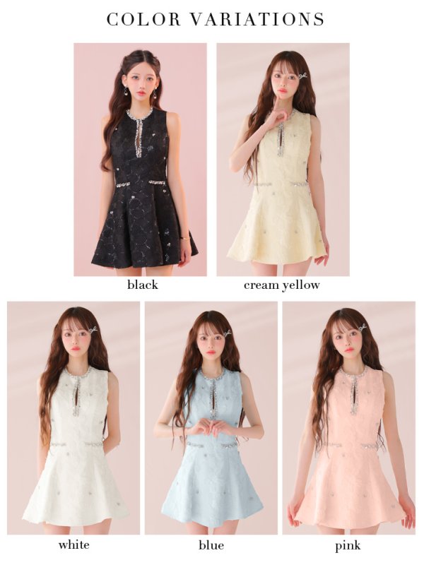 XSサイズあり【ROBE de FLEURS/ローブドフルール】ビジューライン/ ノースリーブ/ フレア/ ミニドレス/ キャバドレス[OF08] [FM3439-CMY-2501]