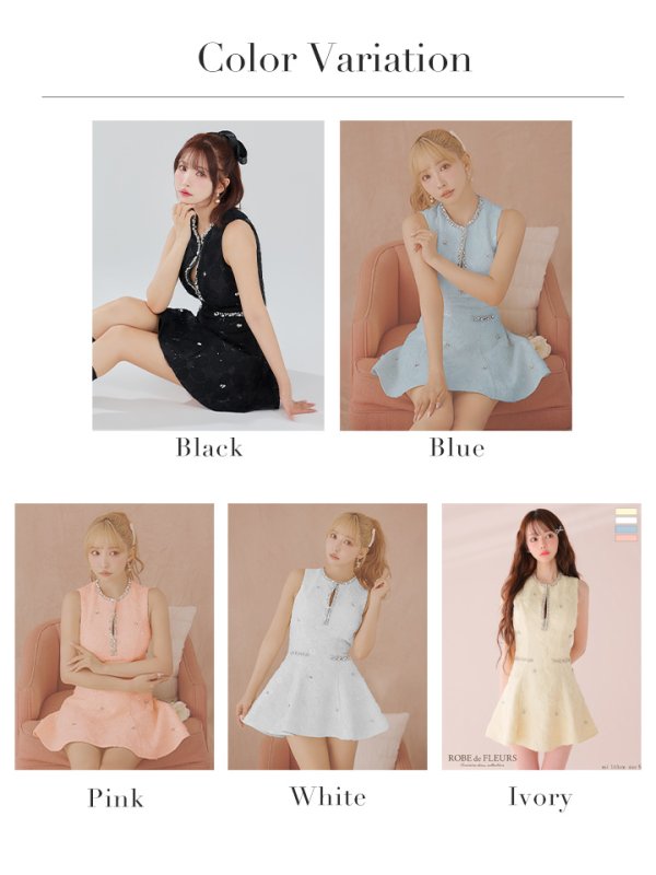 XSサイズあり【ROBE de FLEURS/ローブドフルール】ビジューライン/ ノースリーブ/ フレア/ ミニドレス/ キャバドレス[OF08] [FM3439-CMY-S250110]