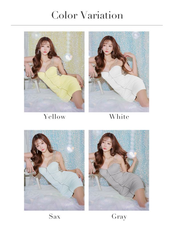 バックビジューが美しいタイトミニドレス。