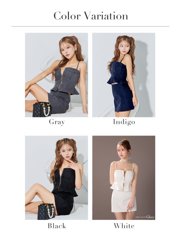 XSサイズあり【Glossy/グロッシー】センタージップ/ ペプラム/ セットアップ/ ミニドレス/ キャバドレス[OF08]【一部予約商品/11月中旬発送予定】 [GL3443-GY-S250116]