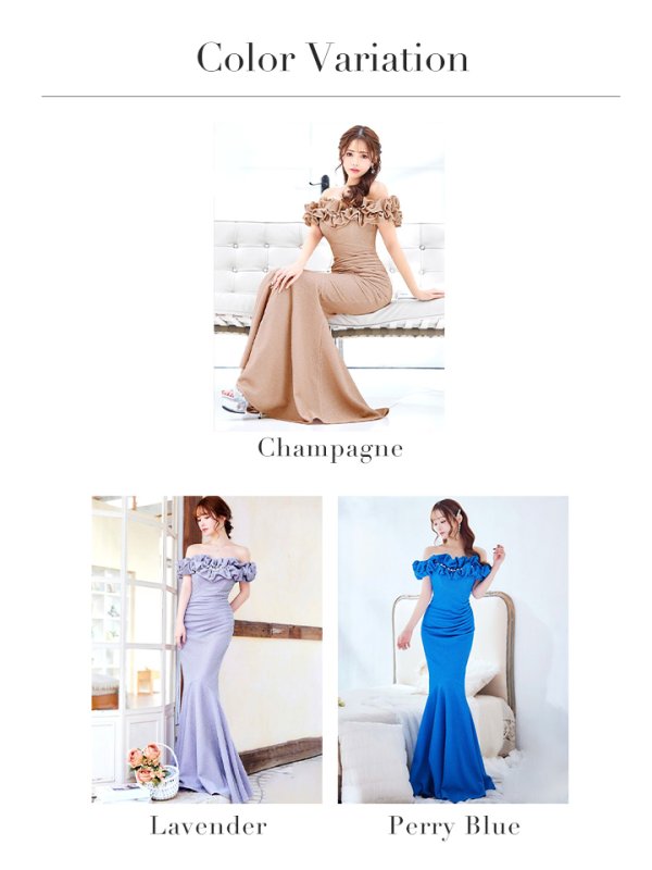 ボリューム感たっぷりのフリルオフショルが華やかなマーメイドロングドレス♡