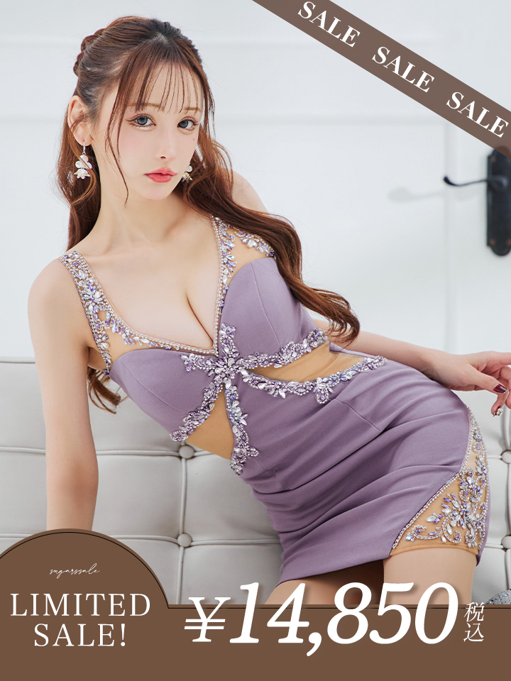 ビジューデザインがラグジュアリーなタイトミニドレス