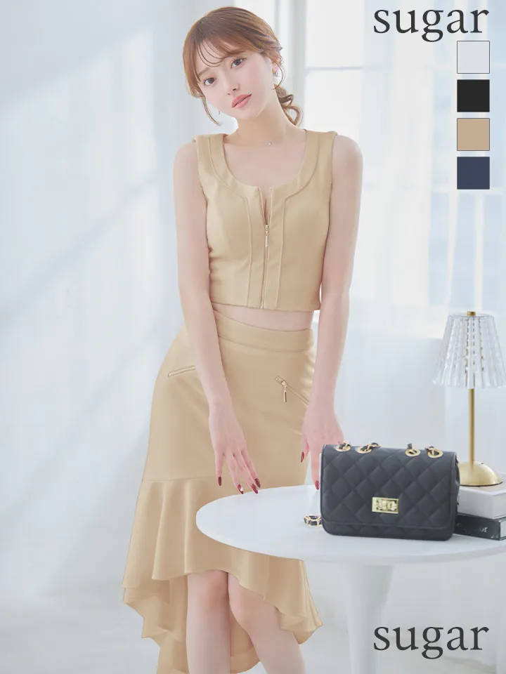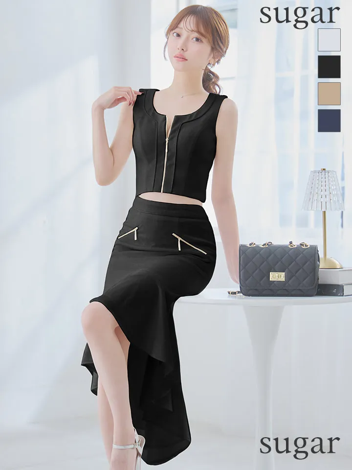 【Andy GLAMOROUS/アンディグラマラス】フロントジップ/ ストレッチ/ ノースリーブ/ フリル/ テールカット/ 膝丈/ セットアップ/ ミディアムドレス/ キャバドレス[OF05] [GMS-V855-NV-2501]