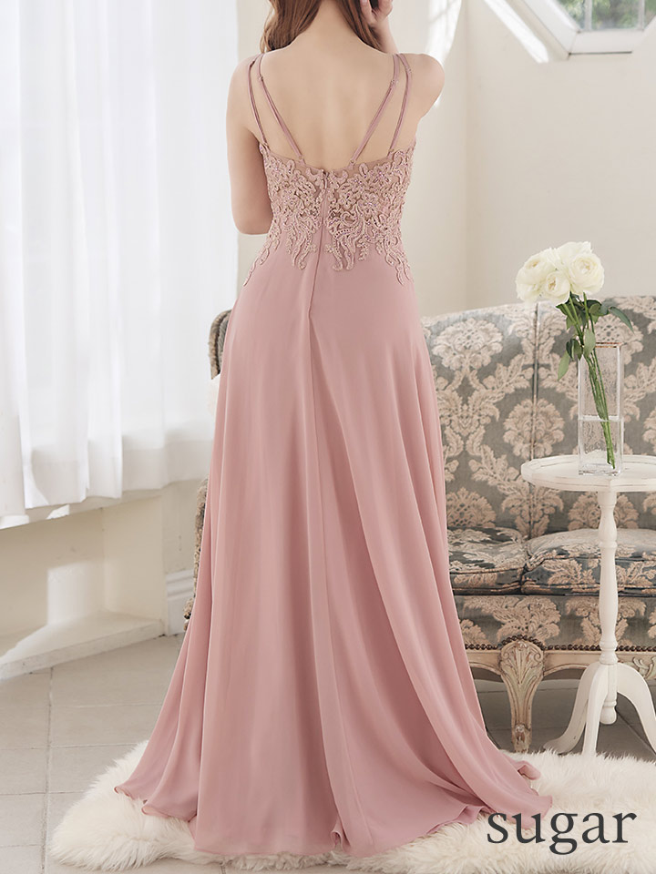 ラインストーン煌めく刺繍レースがエレガントなAラインロングドレス♡