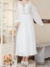 フロントビジューが華やかな印象をプラスし、フレアスリーブで気になる二の腕カバーも◎