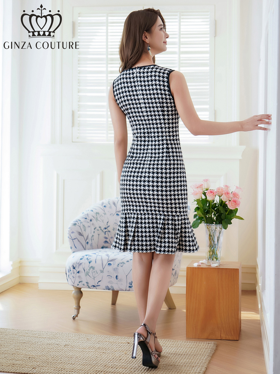 XS-Lサイズあり【GINZA COUTURE/銀座クチュール】千鳥/ チェック/ マーメイド/ ノースリーブ/ 膝丈/ ミディアムドレス/ キャバドレス[OF2] [LKC24167-WxB-2502]
