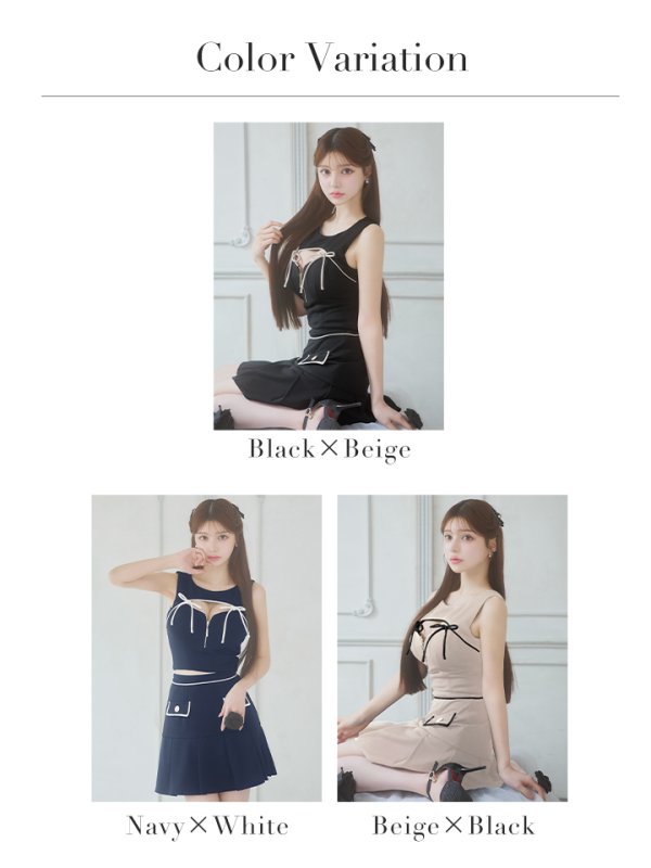 フロントリボンxプリーツスカートがクラシカルガーリーなセットアップミニドレス♡