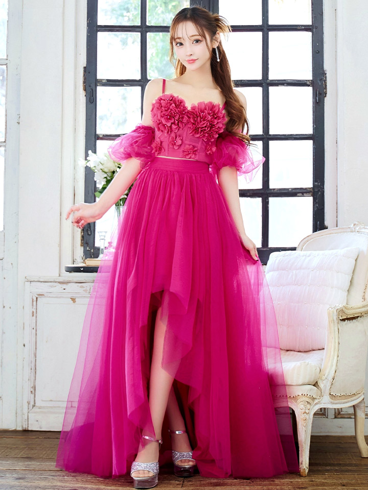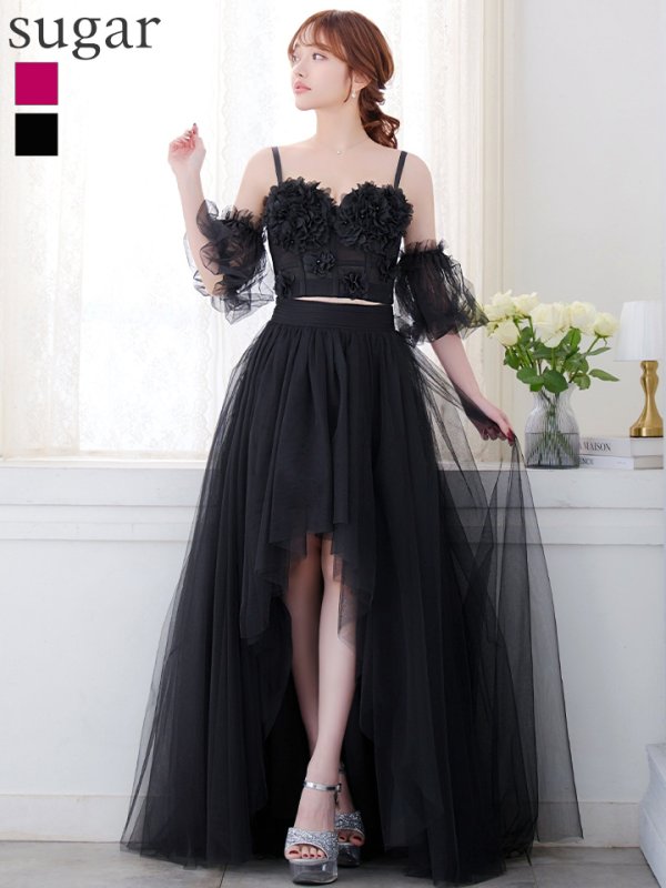 ボリューム感たっぷりのチュールスカートと立体フラワーが圧倒的な存在感を放つセットアップドレス♡