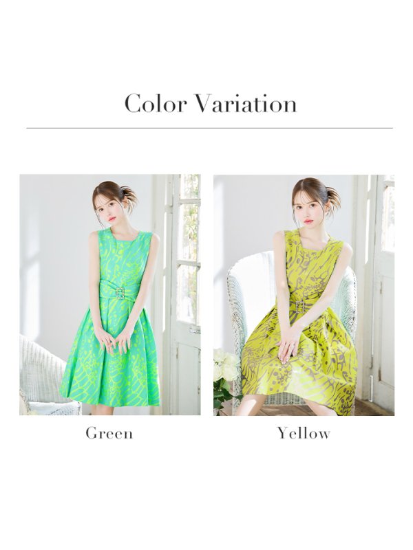 XS-Lサイズあり【GINZA COUTURE/銀座クチュール】プリント/ パールビジューバックル/ ノースリーブ/ フレア/ Aライン/ 膝丈/ ミディアムドレス/ キャバドレス[OF2] [LKC2699-Y-S2502]