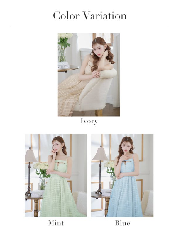 チェック柄のオーガンジーが目を惹くロングドレス。