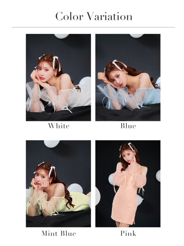 XSサイズあり【an /アン】2way/ シフォンスリーブ/ ビジューショルダー/ フロントジップ/ チェーンパイピング/ タイト/ ミニドレス/ キャバドレス[OF05] [AOC3813-W-S250221]