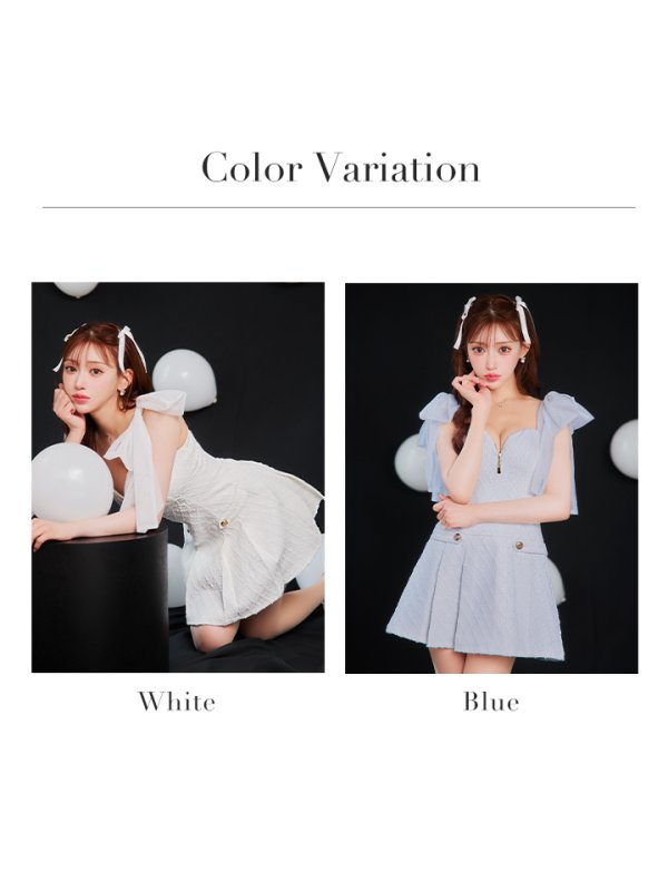 XSサイズあり【ROBE de FLEURS/ローブドフルール】ショルダーチュールリボン/ フレア/ ミニドレス/ キャバドレス[OF08] [FM3361-W-S250221]