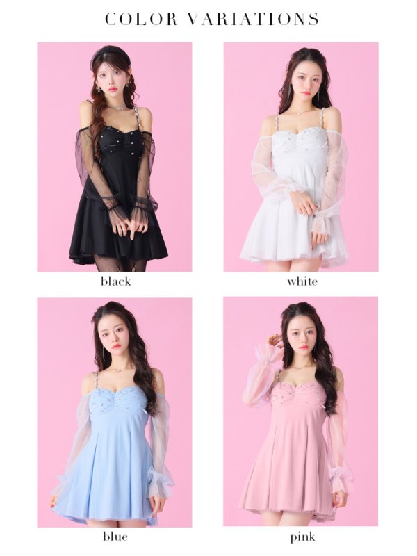 XSサイズあり【ROBE de FLEURS/ローブドフルール】オフショル/ リボン/ シアースリーブ/ フレア/ ミニドレス/ キャバドレス[OF08]【一部予約商品/11月中旬発送予定】 [FM3278-BL-S250221]