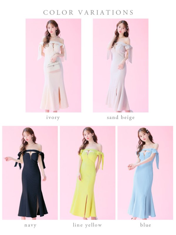 Lサイズあり【DEA./ディア】オフショルリボン/ バストジップ/ マーメイド/ ミディアムドレス/ キャバドレス long[OF08] [DE3596-IV-S250222]
