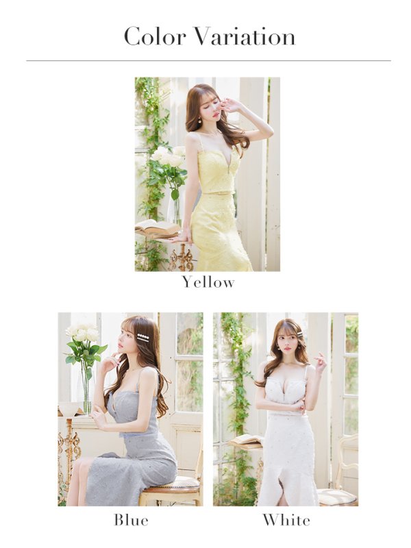 XSサイズあり【ROBE de FLEURS/ローブドフルール】ジャガード/ チュール/ マーメイド/ セットアップ/ ミディアムドレス/ キャバドレス[OF08] [FM3451-W-S250222]